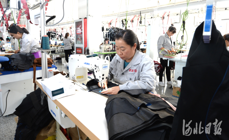 近日,位于河北省涞源县的河北雄源服装科技有限公司员工进行服装缝制。河北日报记者杜柏桦摄