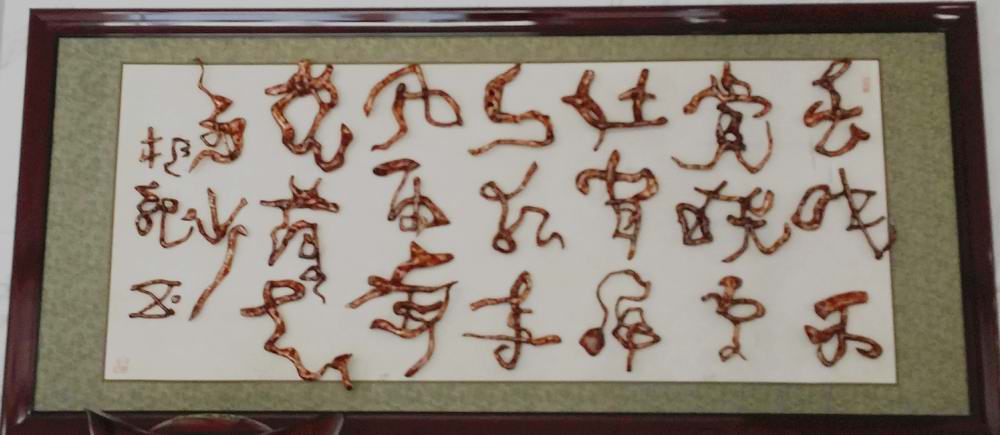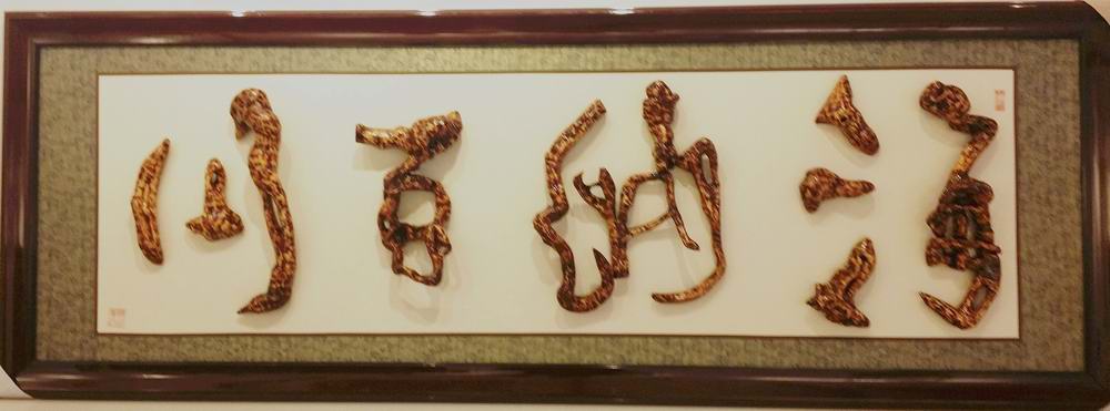 孙根龙根书作品,其风格博采众家之长,其材质选取太行山深山硬杂野生树根,浑然天成,朴拙遒劲,真正结合了根的自然美和书法线条美。全套工艺全部手工完成,高雅精美,是书界中不可多得的精品。同时,取材于深山老林的长青之树,深得地府之灵气,具有避邪镇宅永得平安的功效,成为装饰、收藏、馈赠的高档饰品。其作品中,海纳百川等作品深受好评。