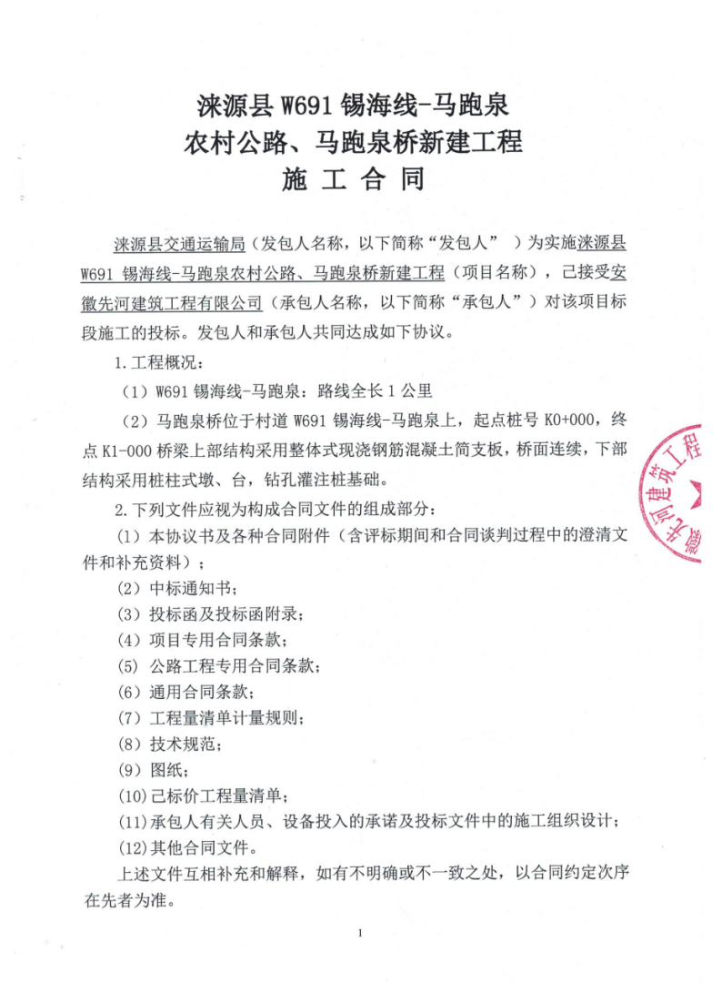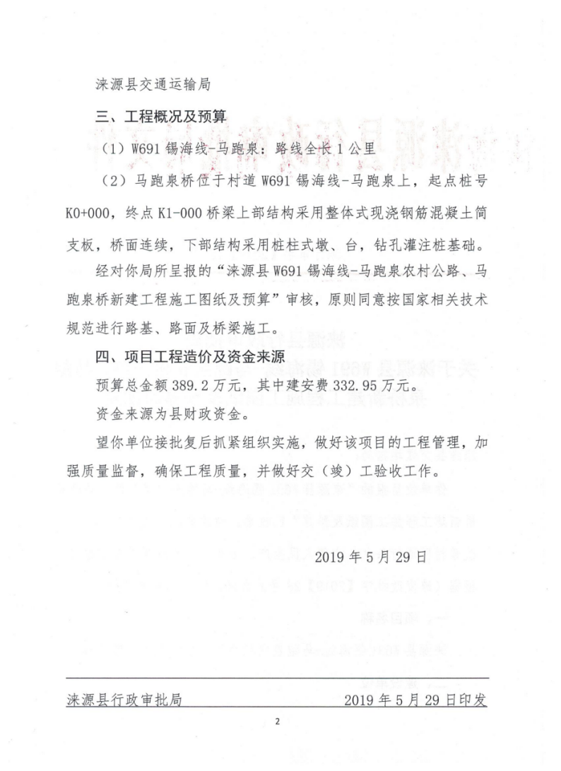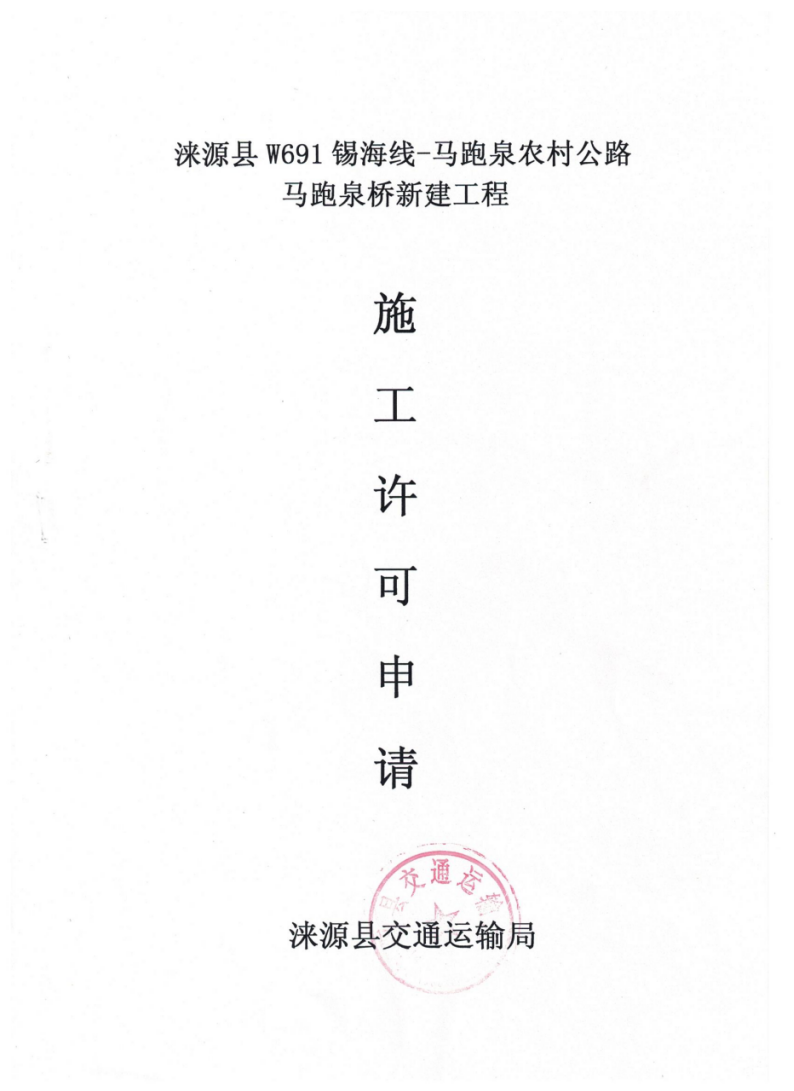 涞源县W691锡海线-马跑泉农村公路、马跑泉桥新建工程项目