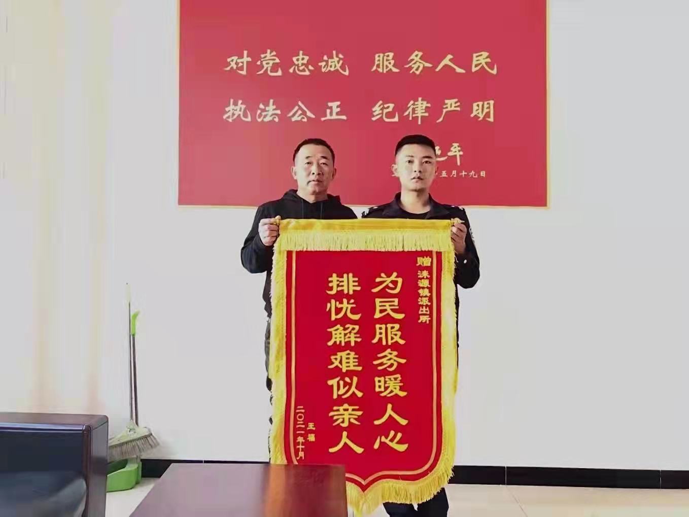 “公正执法 热心为民”,这是群众赠与南屯派出所民警锦旗上的一句话,生动体现了服务为民、警民同心的深厚情谊。2021年10月8日,家住南屯镇的孙先生和妻子来到南屯派出所,将这面锦旗送给帮其寻回手机的民警。 2021年9月25日上午,南屯派出所民警接到辖区群众孙某报警称:因降雨,妻子和孩子搭乘了一位好心司机的车,但在下车时不慎将手机遗失在该车上,希望民警帮忙寻找。 得知这一情况后,值班民警第一时间给丢失手机打电话、发短信,但手机一直处于无人接听状态,短信也无人回应。在和求助群众进一步了解情况后,民警判断其所搭乘的车主应该是南屯辖区的居民,随后民警加大走访力度,在群众乘车地点附近村庄和企业走访获取相关信息,同时利用村内大喇叭广播的方式寻找该车主。数小时的努力没有白费,孙先生妻子搭乘的那位好心车主通过村内大喇叭广播得到消息,主动与南屯派出所民警取得了联系,并告知民警事情原委,随后民警驱车赶到该车主所在企业取回了孙某妻子遗失的手机。9月26日上午,孙某夫妇来到派出所认领了找回的财物。在感激之余,孙某的妻子更是对民警热情服务、严谨高效的工作作风赞扬不已。 |