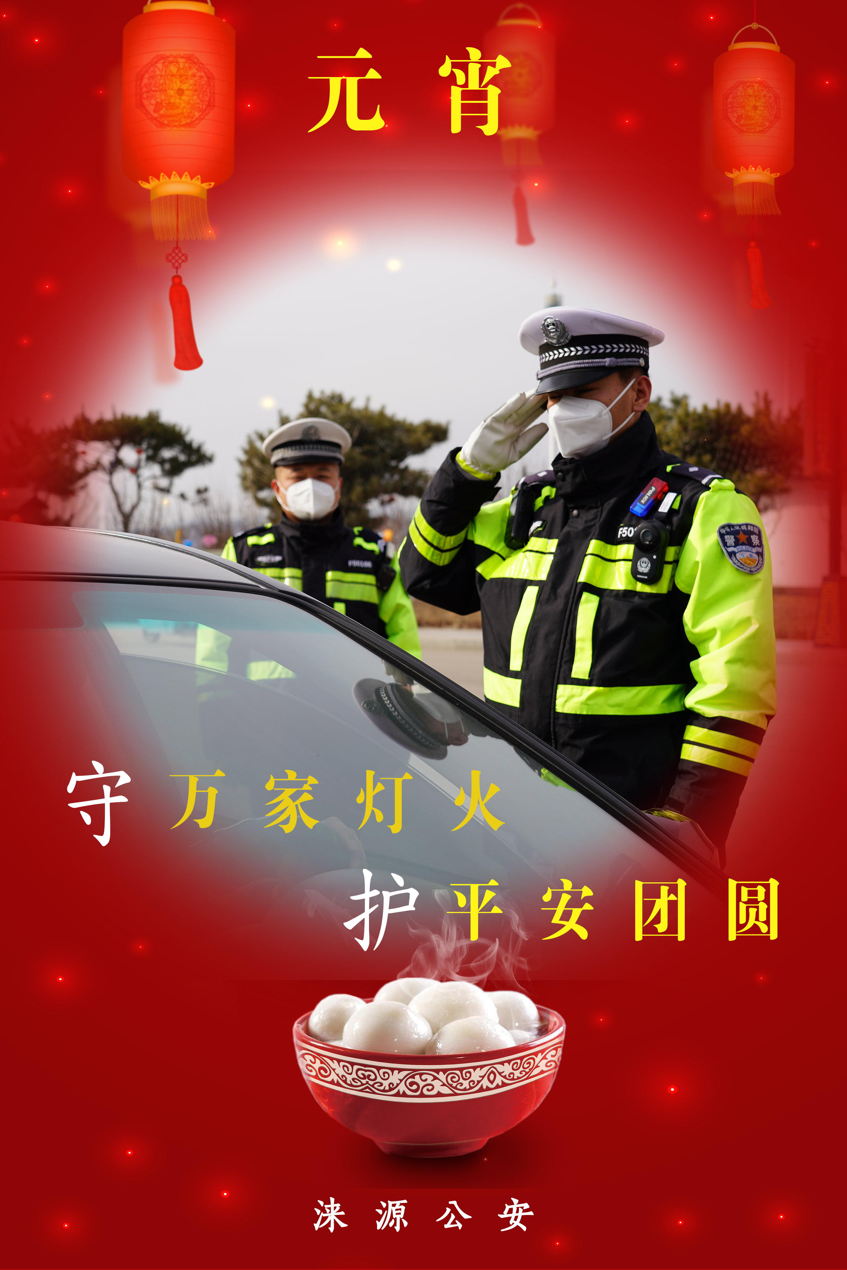 治安:警营迎元宵。我们岗位上做出热情服务的元宵,守护繁花似锦,保障社会安宁。隐患排查、治安检查、宣传防范,我们用默默付出换取城市平安和谐。新的一年我们将继续不忘初心、牢记使命,朝着维护社会稳定、护航经济发展的目标笃行奋进。祝您万事胜意、元宵节快乐!