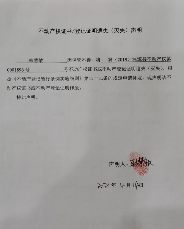 涞源县不动产登记中心公告