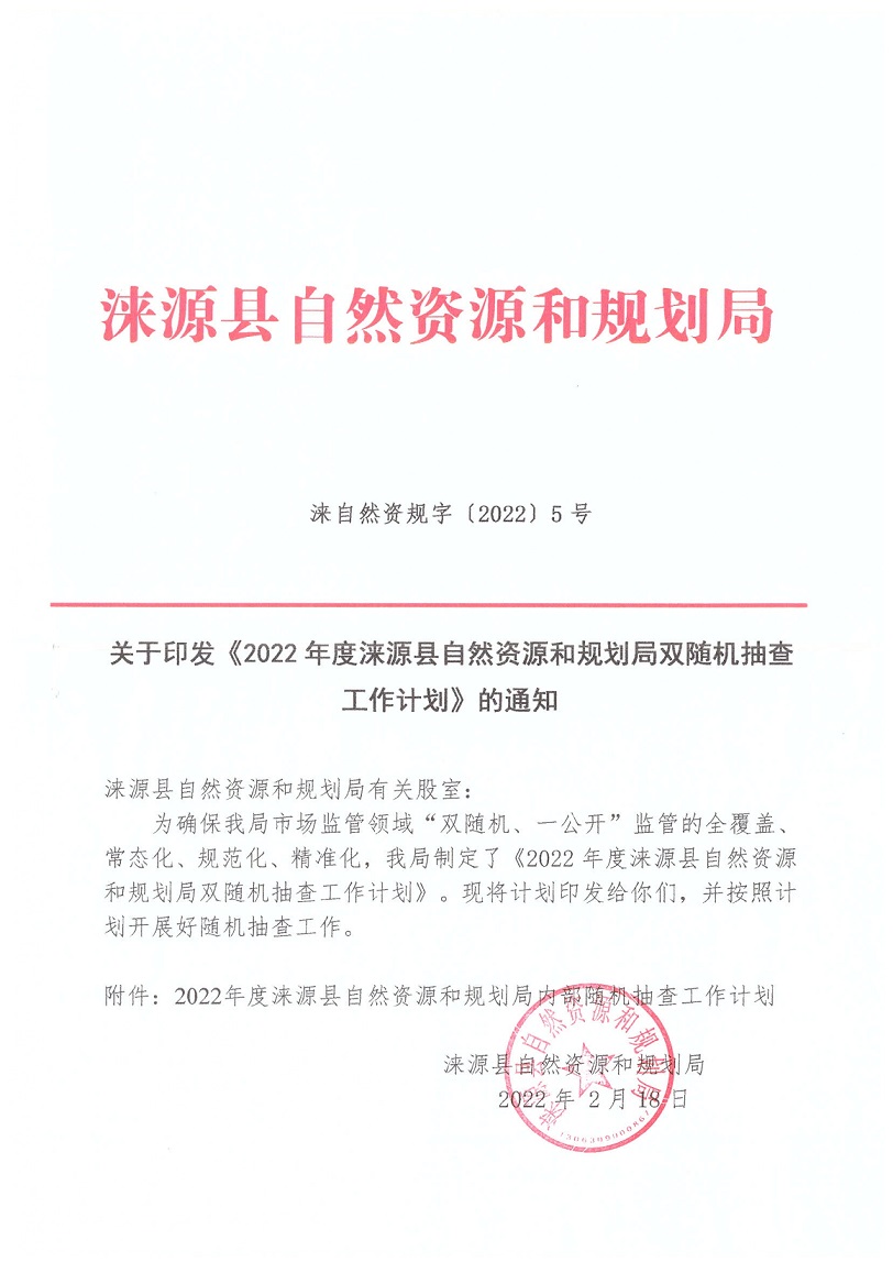 2022年度涞源县自然资源和规划局双随机抽查工作计划