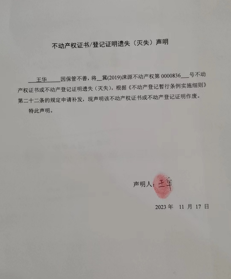 涞源县不动产登记中心不动产权证书作废公告