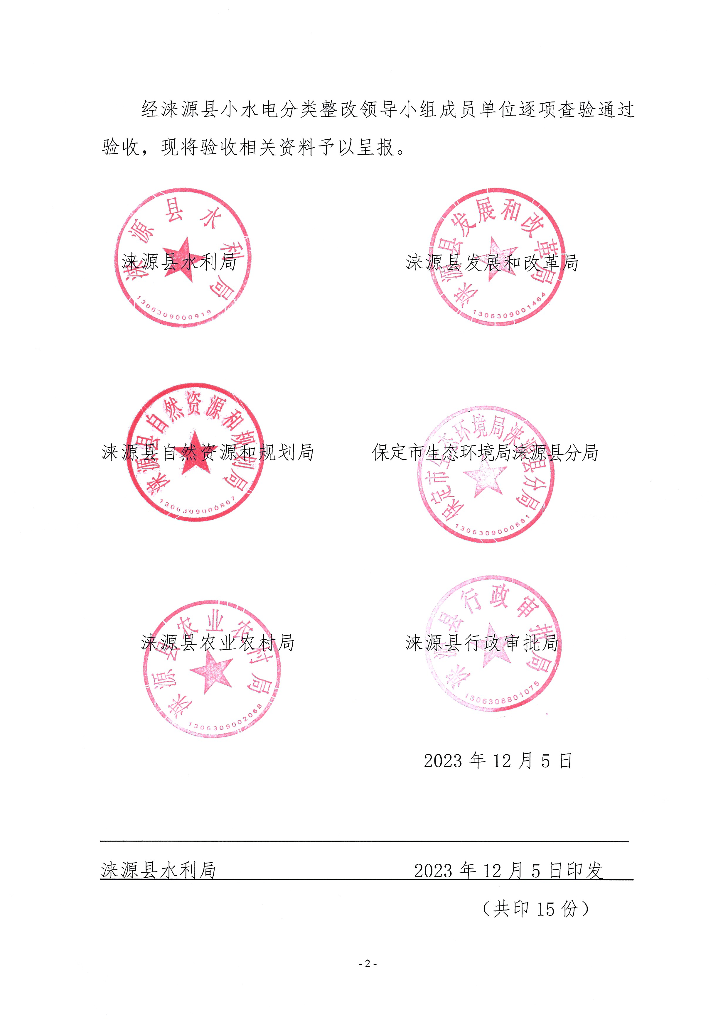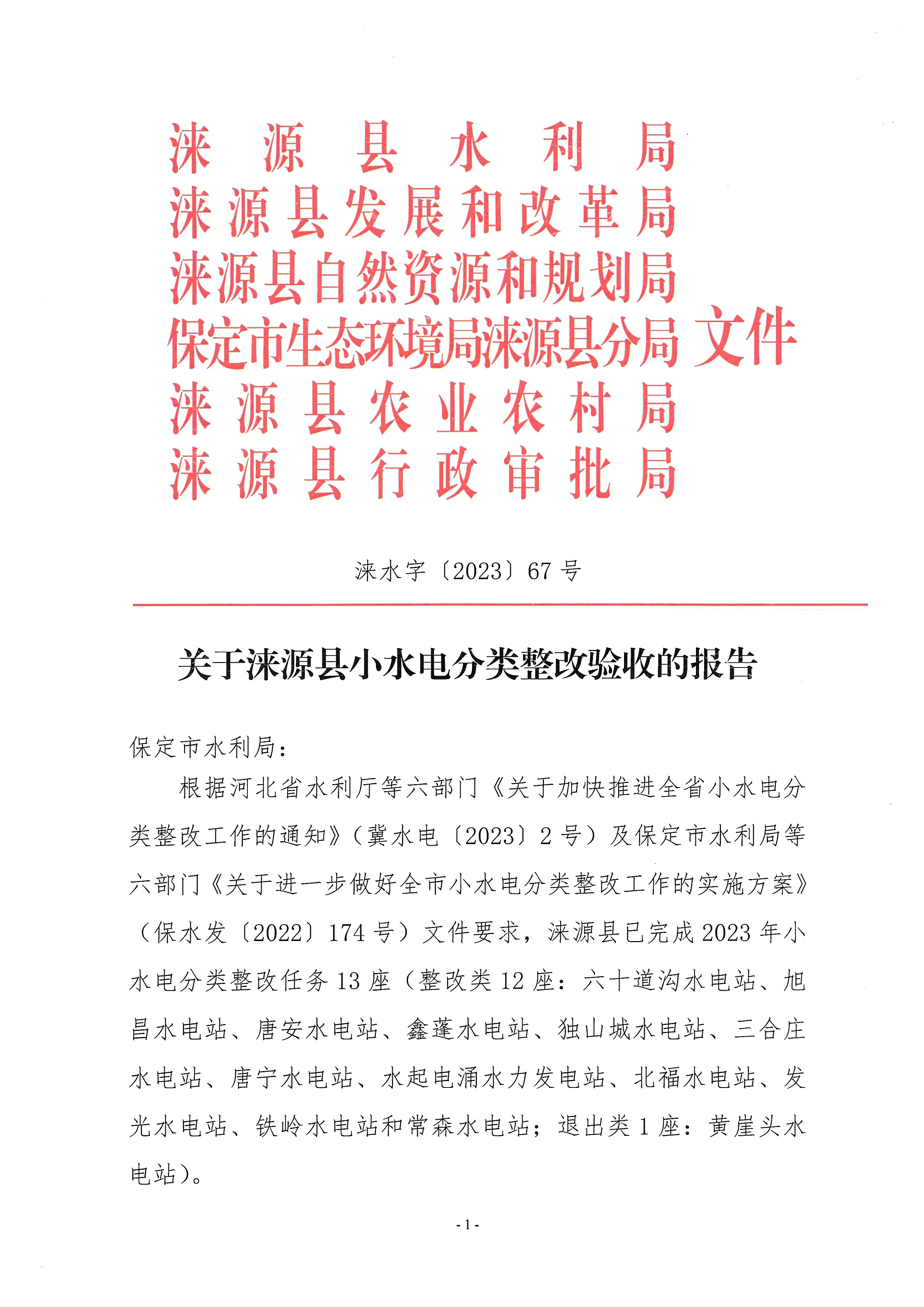 | 涞源县水利局涞源县发展和改革局涞源县自然资源和规划局保定市生态环境局涞源县分局涞源县农业农村局涞源县行政审批局关于涞源县小水电分类整改验收的报告 | ||||