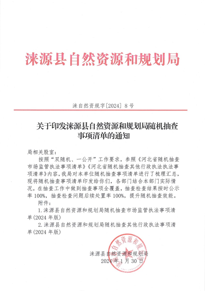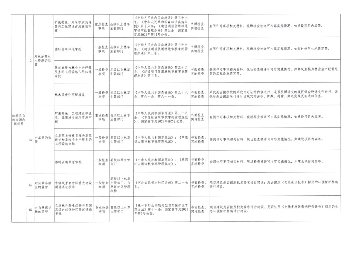 涞源县自然资源和规划局随机抽查事项清单(2024版)