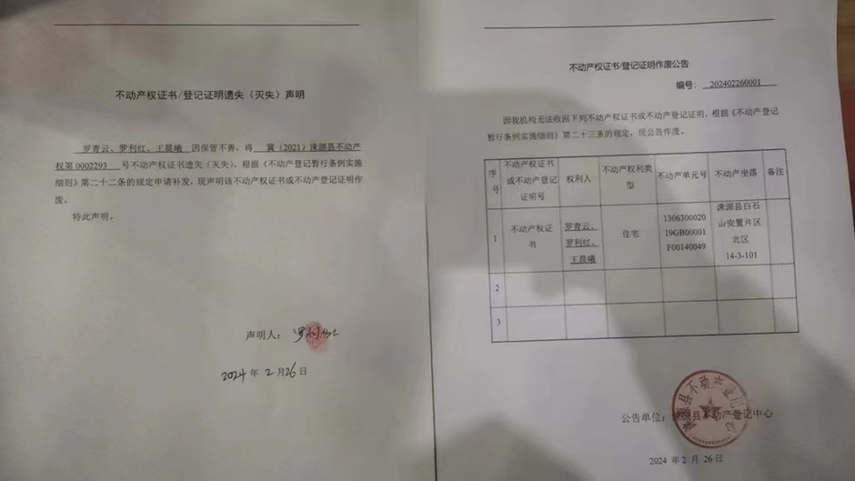 涞源县不动产登记中心不动产权证书作废公告