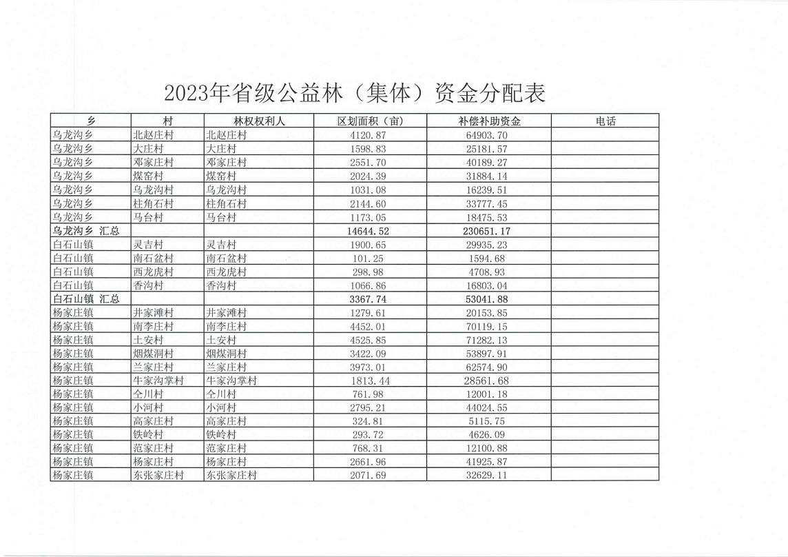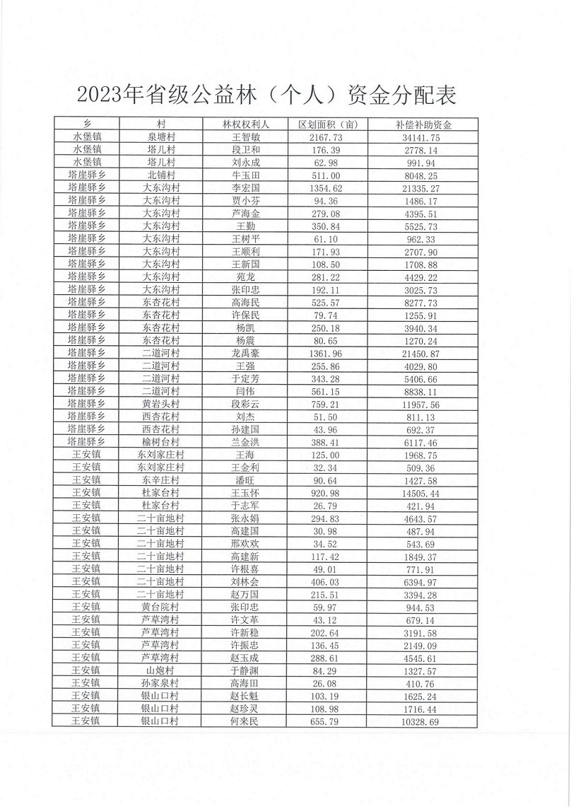 | 涞源县自然资源和规划局2023年省级公益林补偿资金发放公示 | ||||