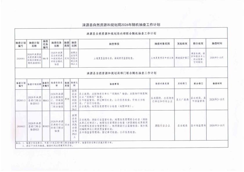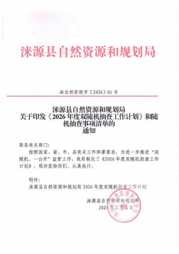涞源县自然资源和规划局关于印发《2026年度双随机抽查工作计划》和随机抽查事项清单的通知