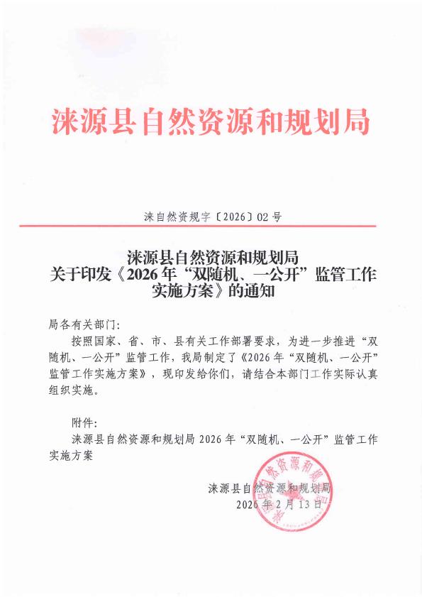 涞源县自然资源和规划局关于印发《2026年度“双随机、一公开”监管工作实施方案》的通知