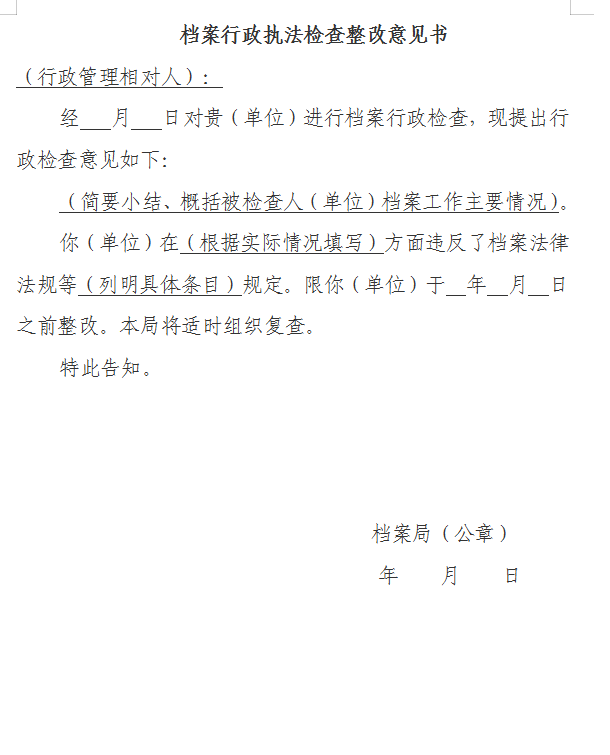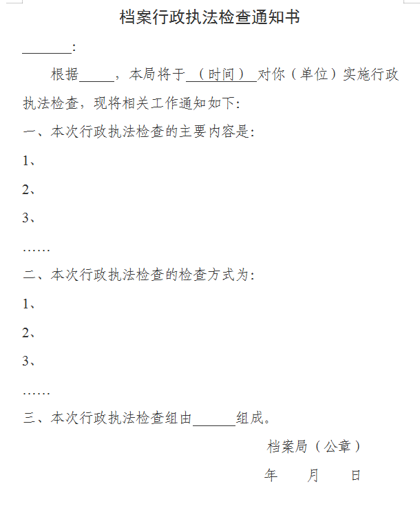 档案局行政执法检查文书样本.docx