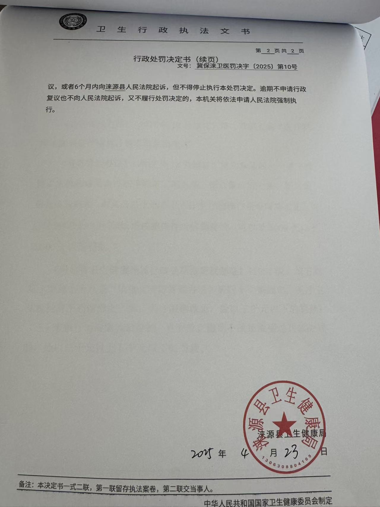 冀保涞卫医罚决字【2025】第10号涞源县北石佛乡 葛小菲卫生所违反《消毒管理办法》案
