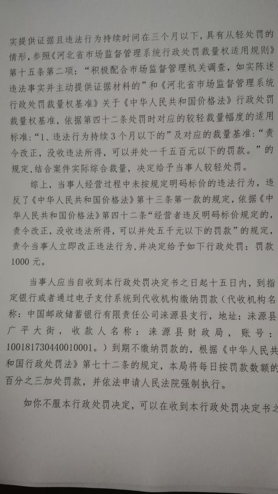 涞市监处罚〔2025〕 111号涞源县新忠粮油菜店未按规定明码标价案