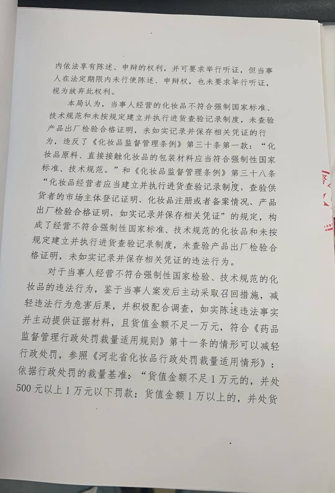 涞源县艾初色日化店涉嫌经营不合格化妆品和未按规定建立进货查验制度案
