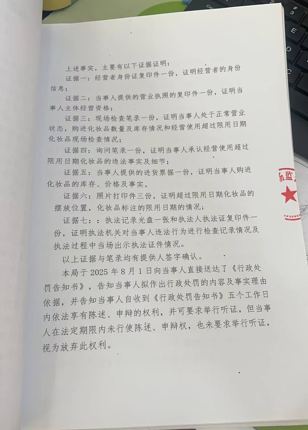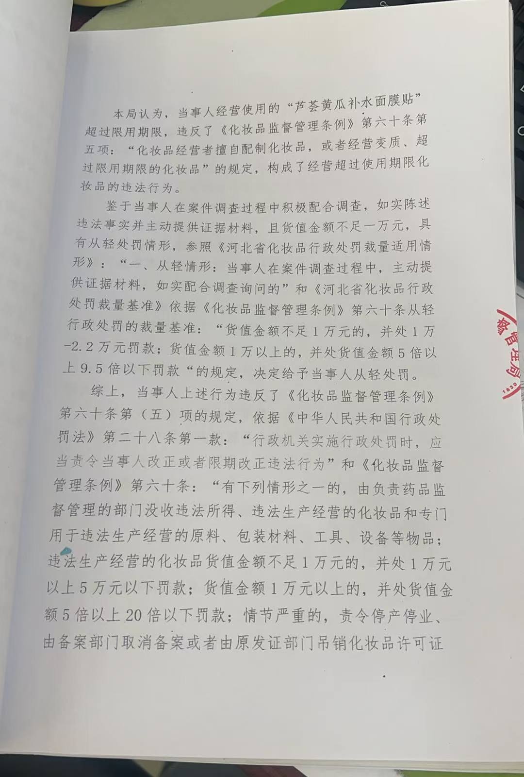 涞市监处罚〔2025〕96号涞源县沐颜养生店涉嫌经营使用过期化妆品案