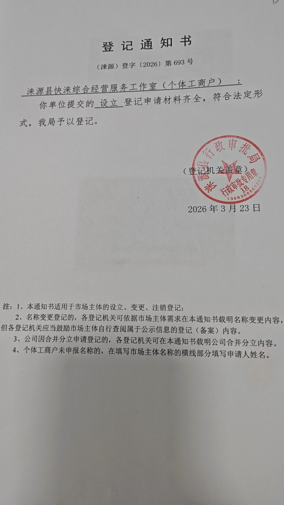 关于涞源县快涞综合经营服务工作室事后的公开