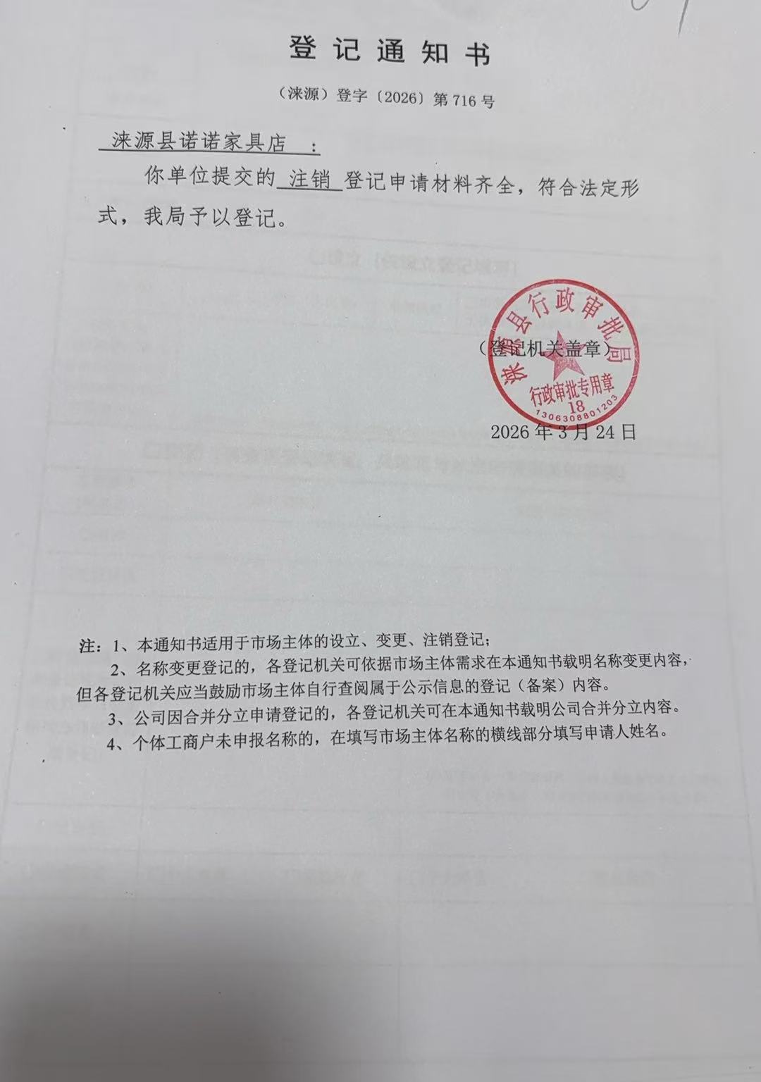 关于涞源县诺诺家具店许可的公开