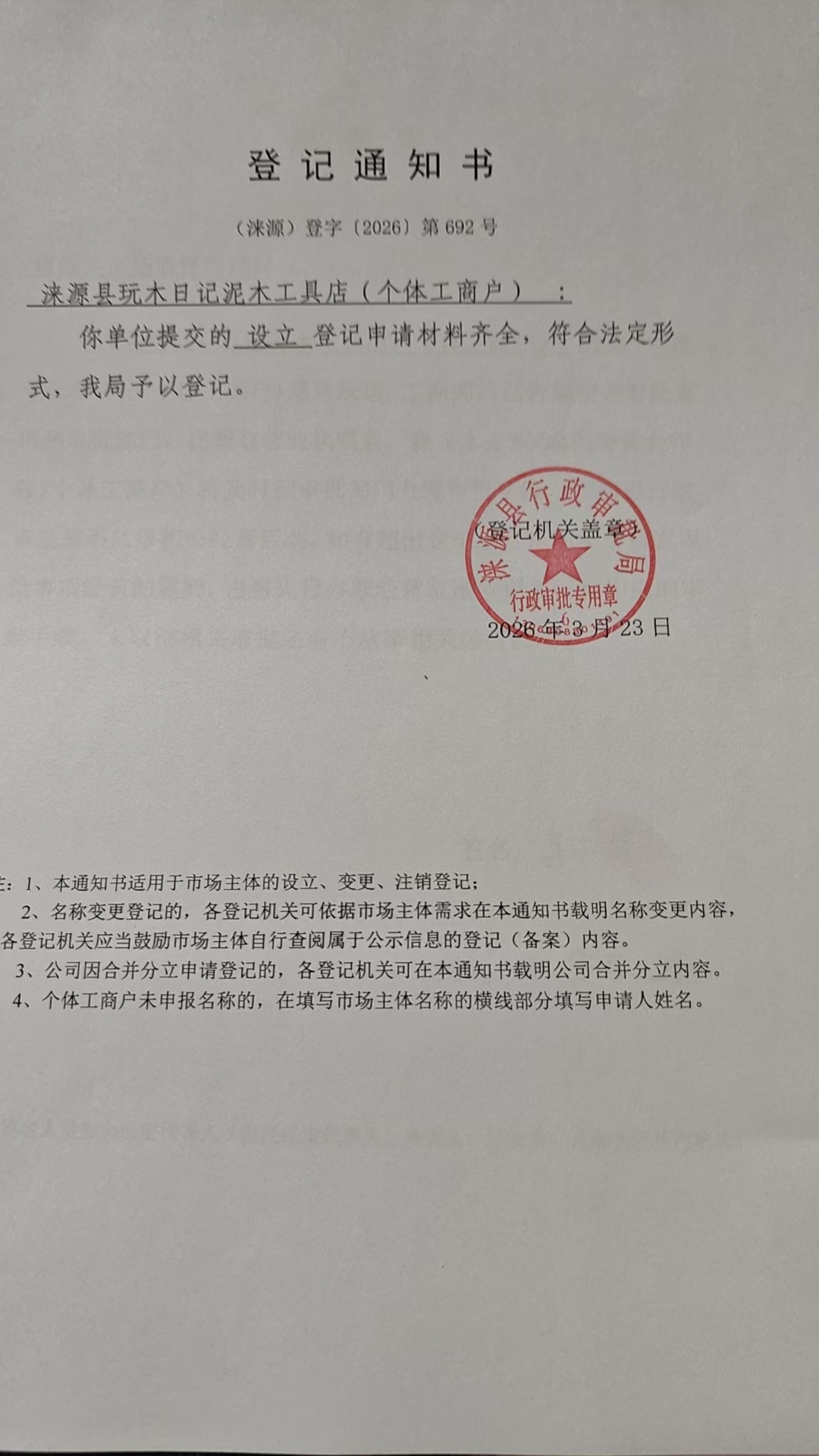 关于涞源县玩木日记泥土工具店设立的公示