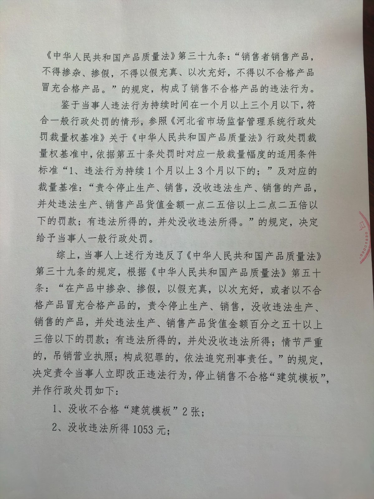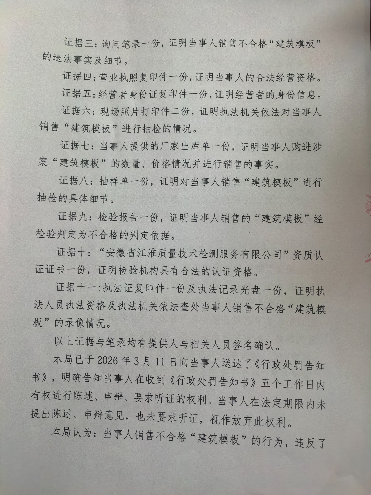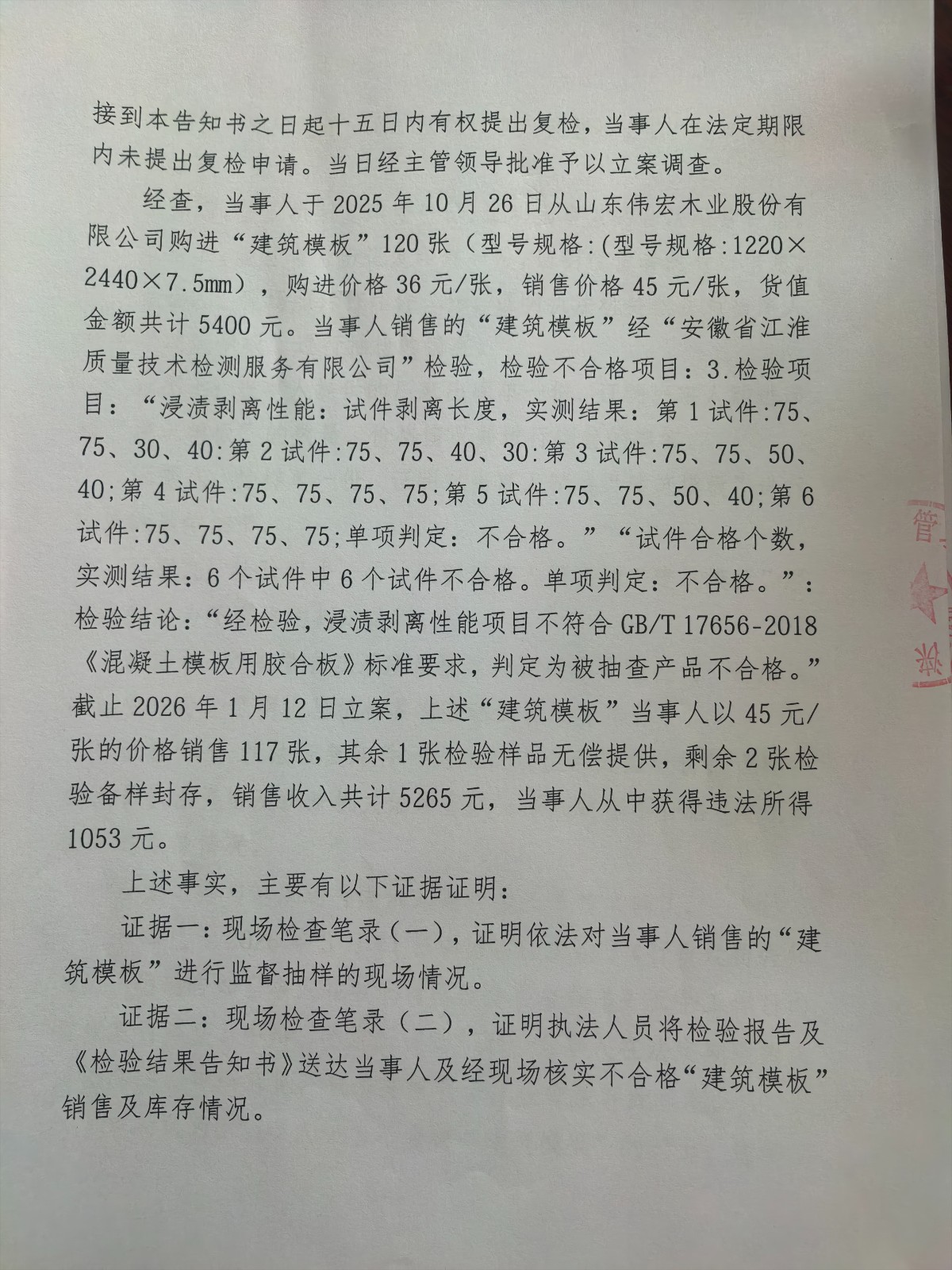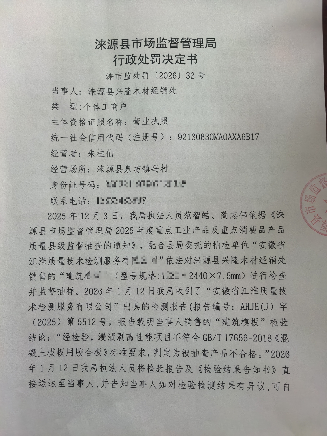 涞市监处罚〔2026〕32号,涞源县兴隆木材经销处销售不合格“建筑模板”案
