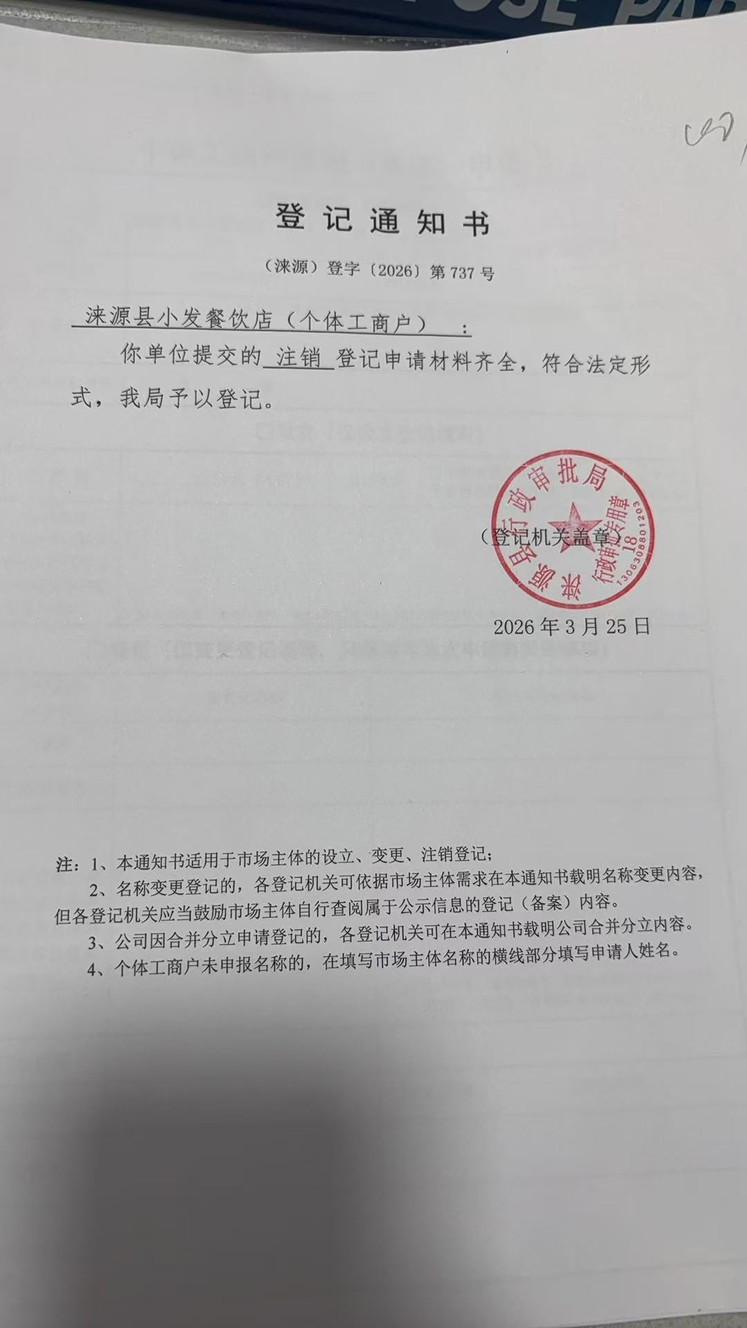 关于涞源县小发餐饮店许可的公开