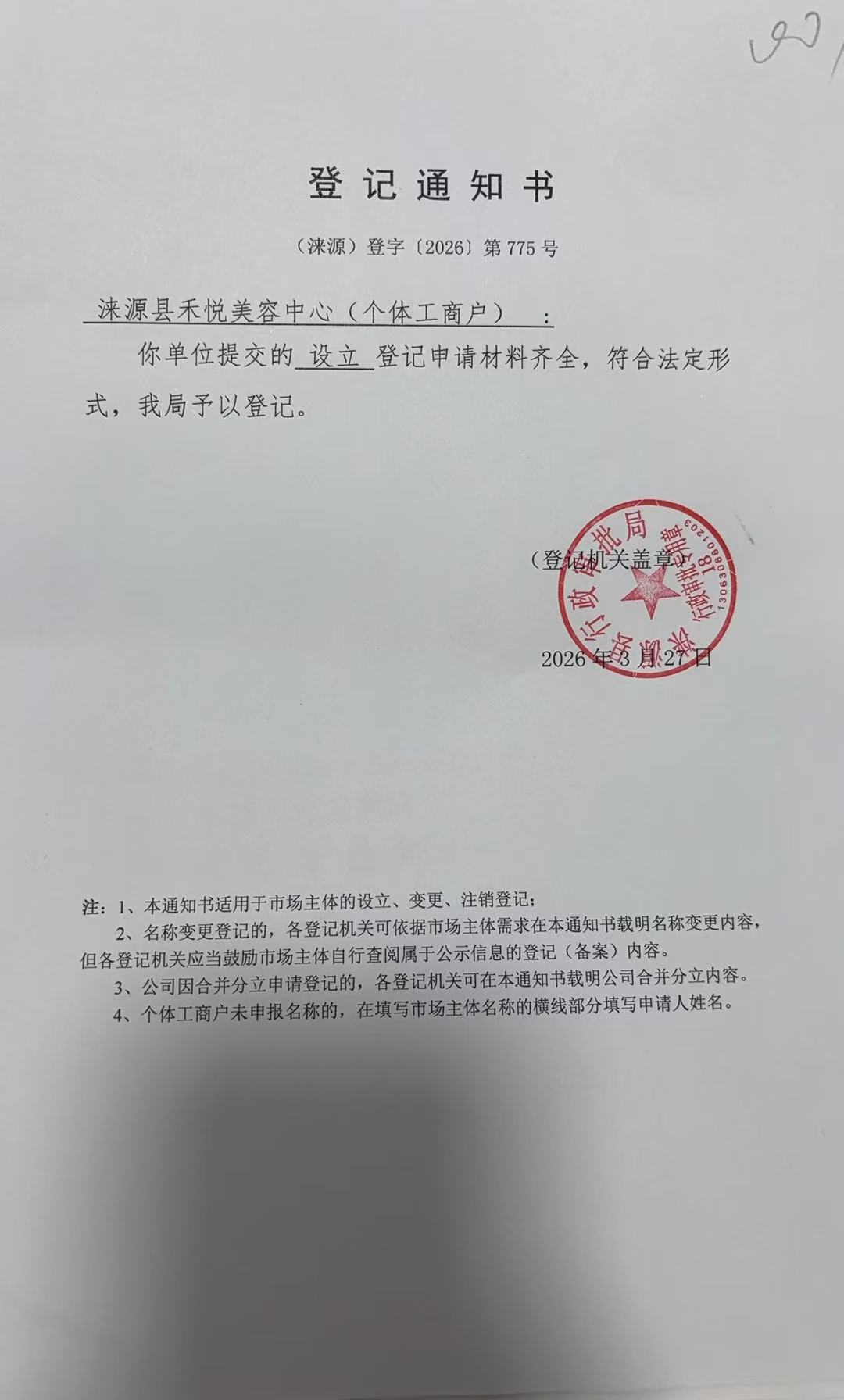 关于涞源县禾悦美容中心许可的公开