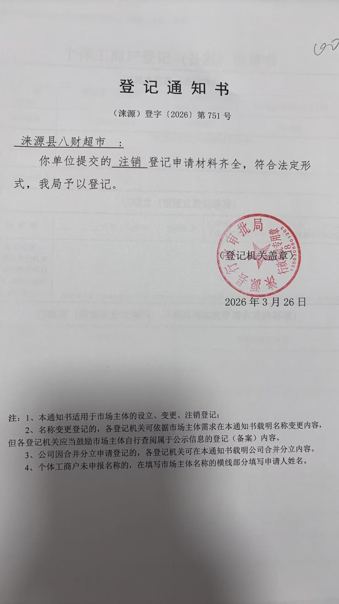 关于涞源县八财超市许可的公开