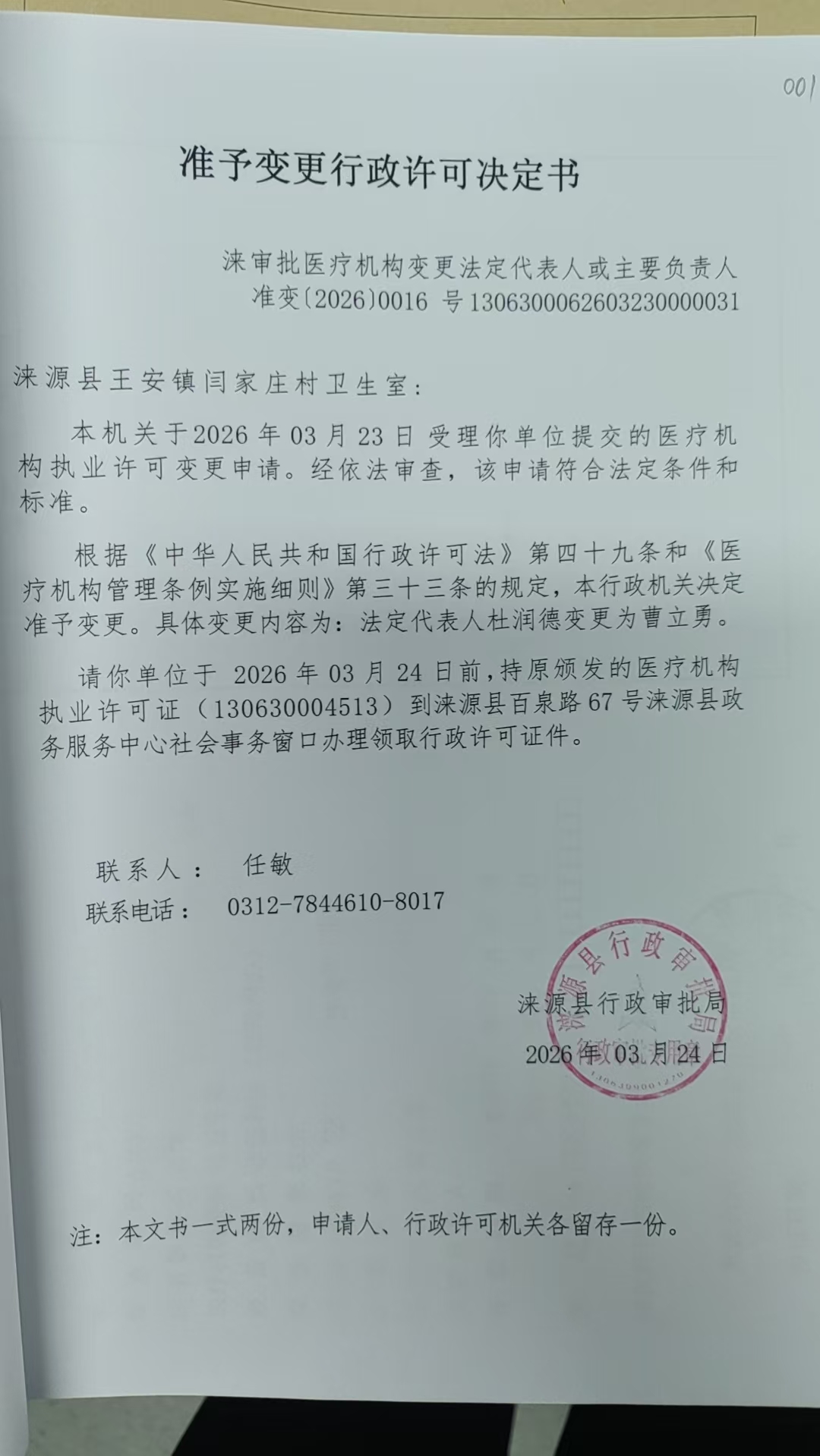 涞源县王安镇闫家庄村卫生室行政许可决定书.jpg