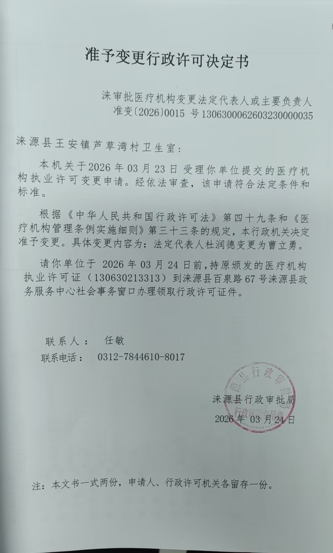 涞源县王安镇芦草湾村卫生室行政许可决定书.jpg