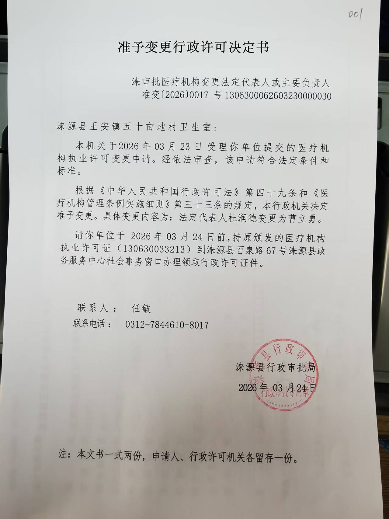 涞源县王安镇五十亩地村卫生室行政许可决定书.jpg