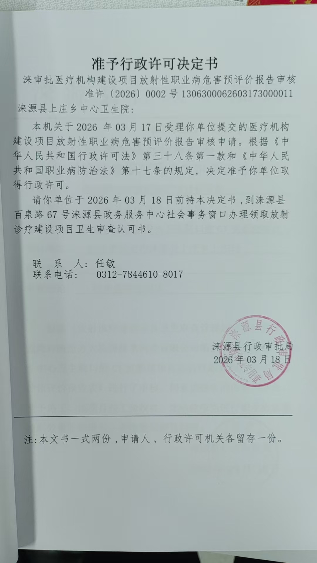 涞源县上庄乡中心卫生院行政许可决定书.jpg