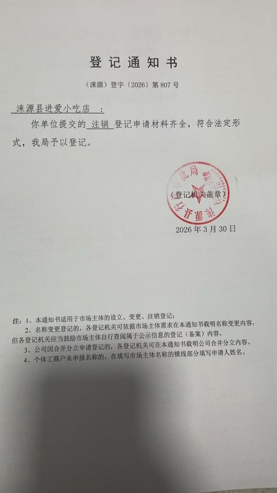 关于涞源县进爱小吃店许可的公开
