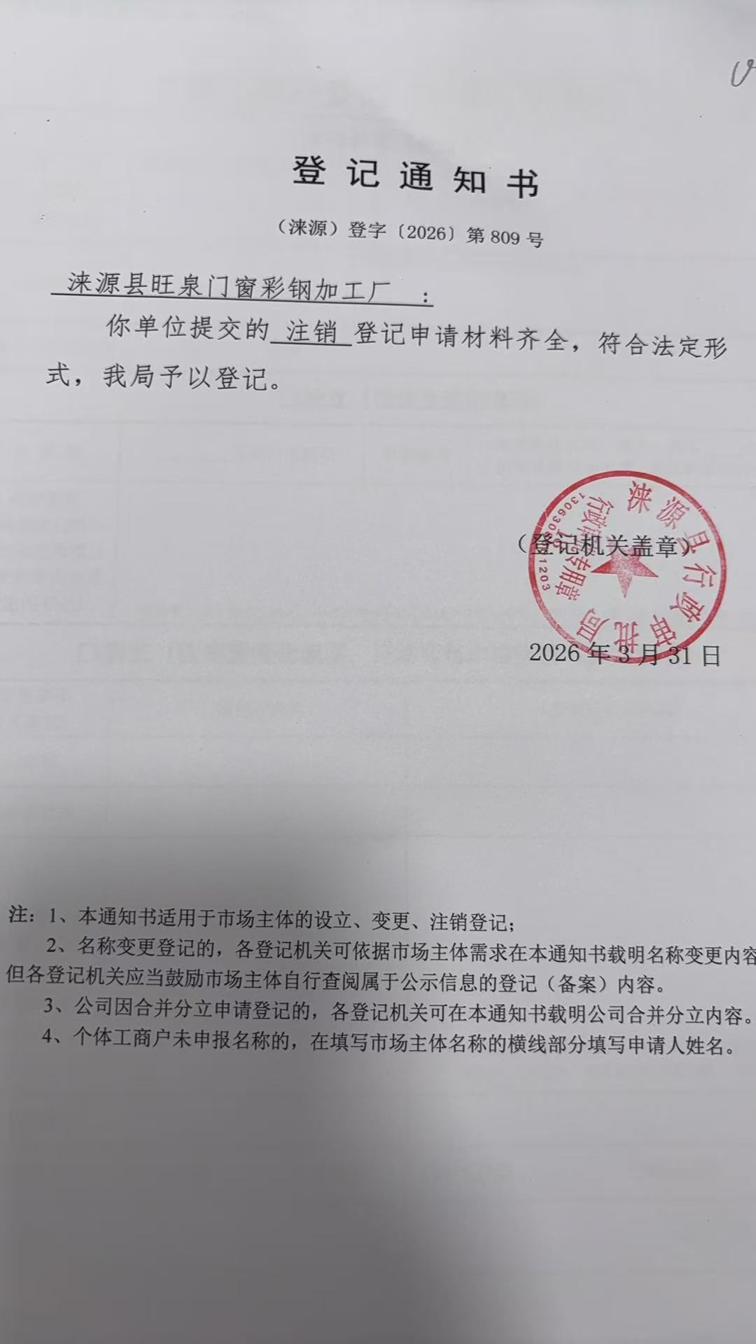 关于涞源县旺泉门窗彩钢加工厂许可的公开