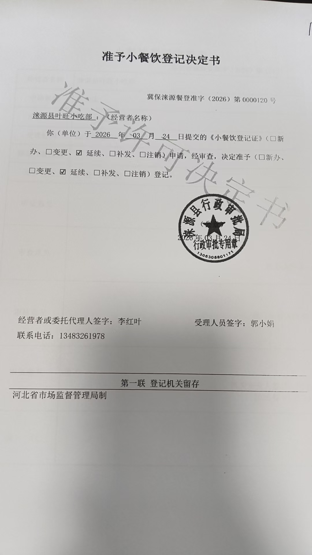 涞源县叶旺小吃部准予小餐饮登记决定书.jpg