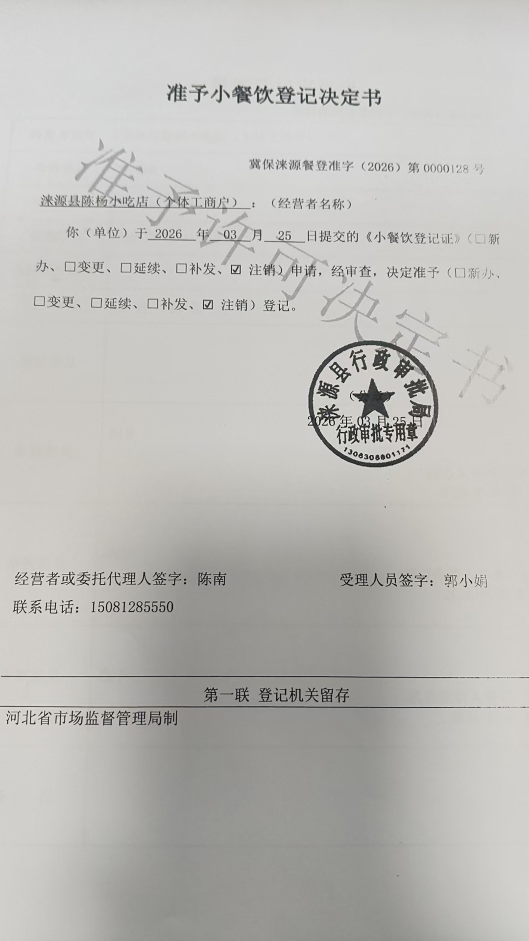 涞源县陈杨小吃店准予小餐饮登记决定书.jpg