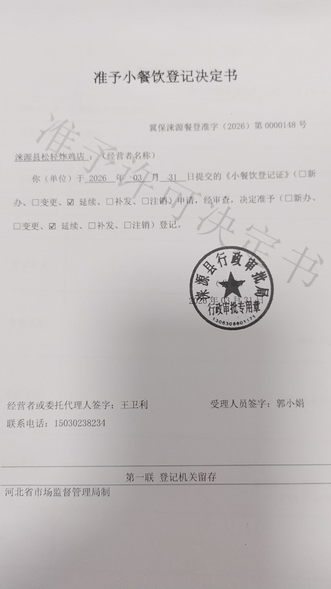 涞源县松轻炸鸡店准予小餐饮登记决定书.jpg