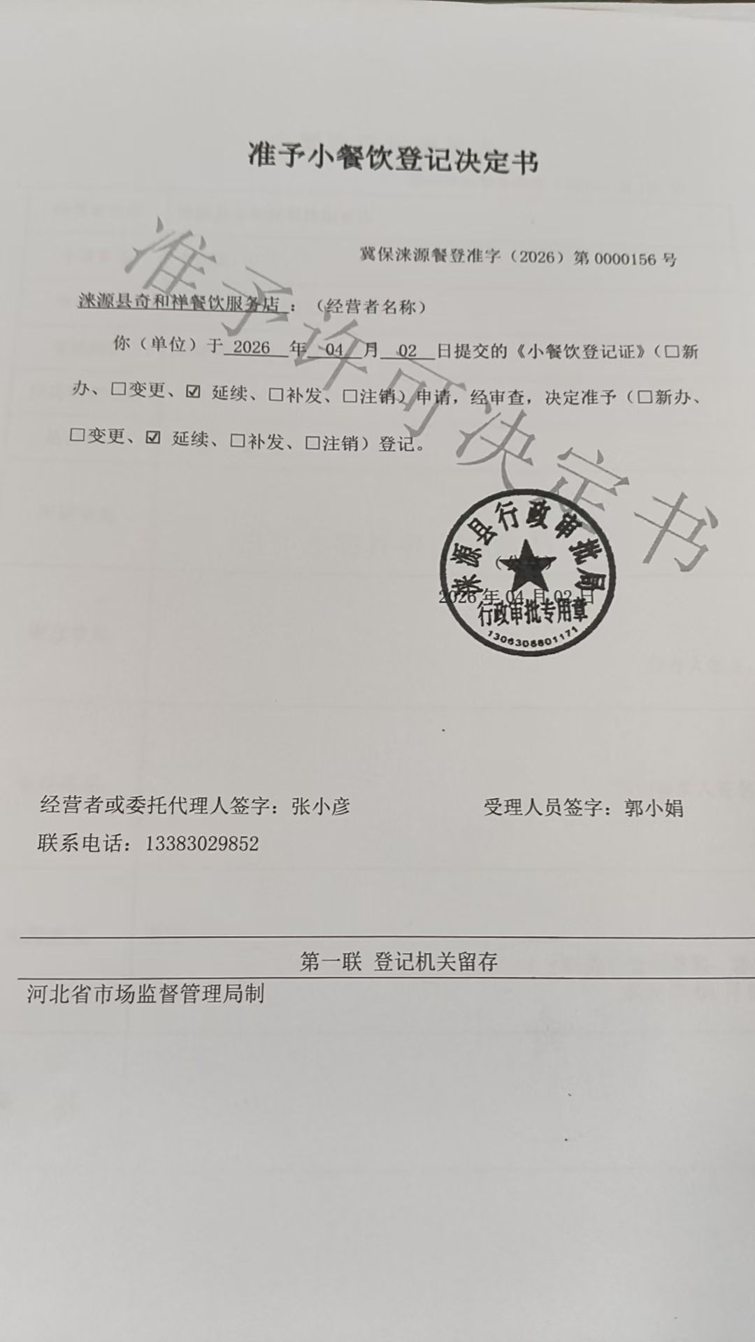 涞源县奇和祥餐饮服务店准予小餐饮登记决定书.jpg