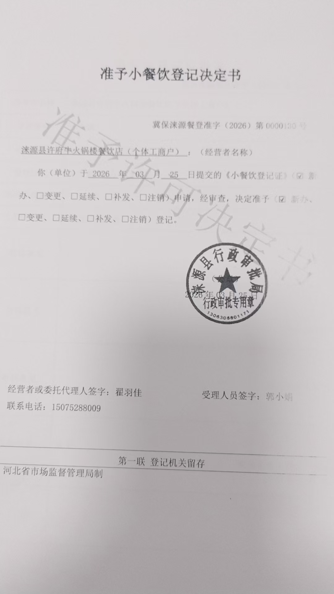 涞源县许府牛火锅楼餐饮店准予小餐饮登记决定书.jpg