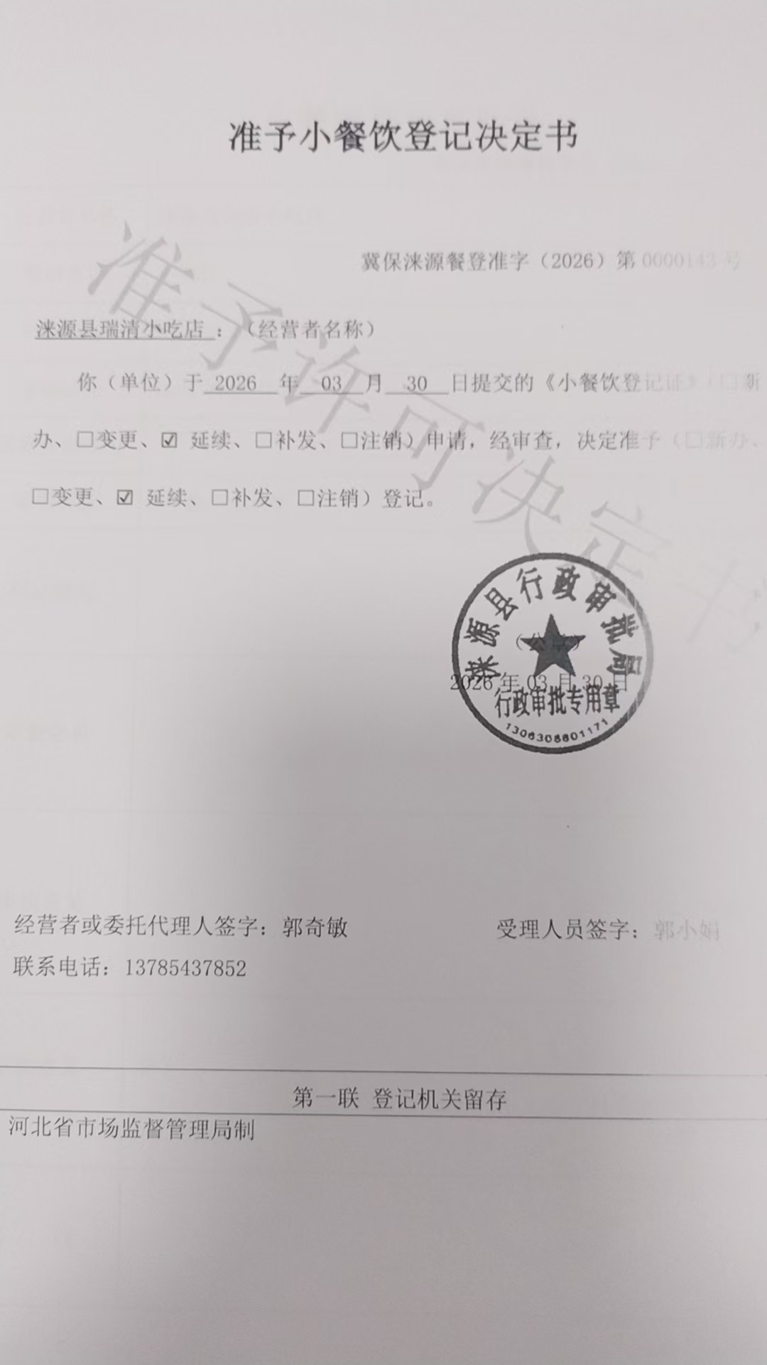 涞源县瑞清小吃店准予小餐饮登记决定书.jpg