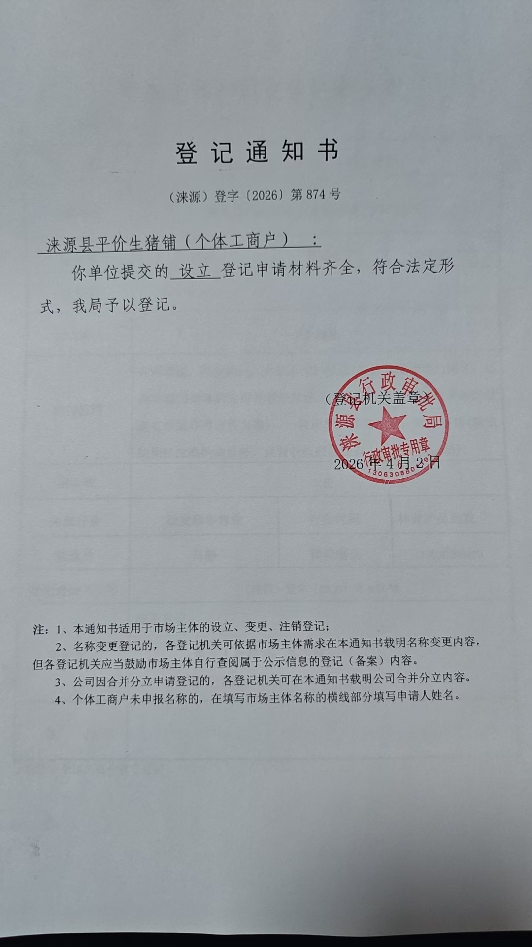 关于涞源县平价生猪铺设立的公示