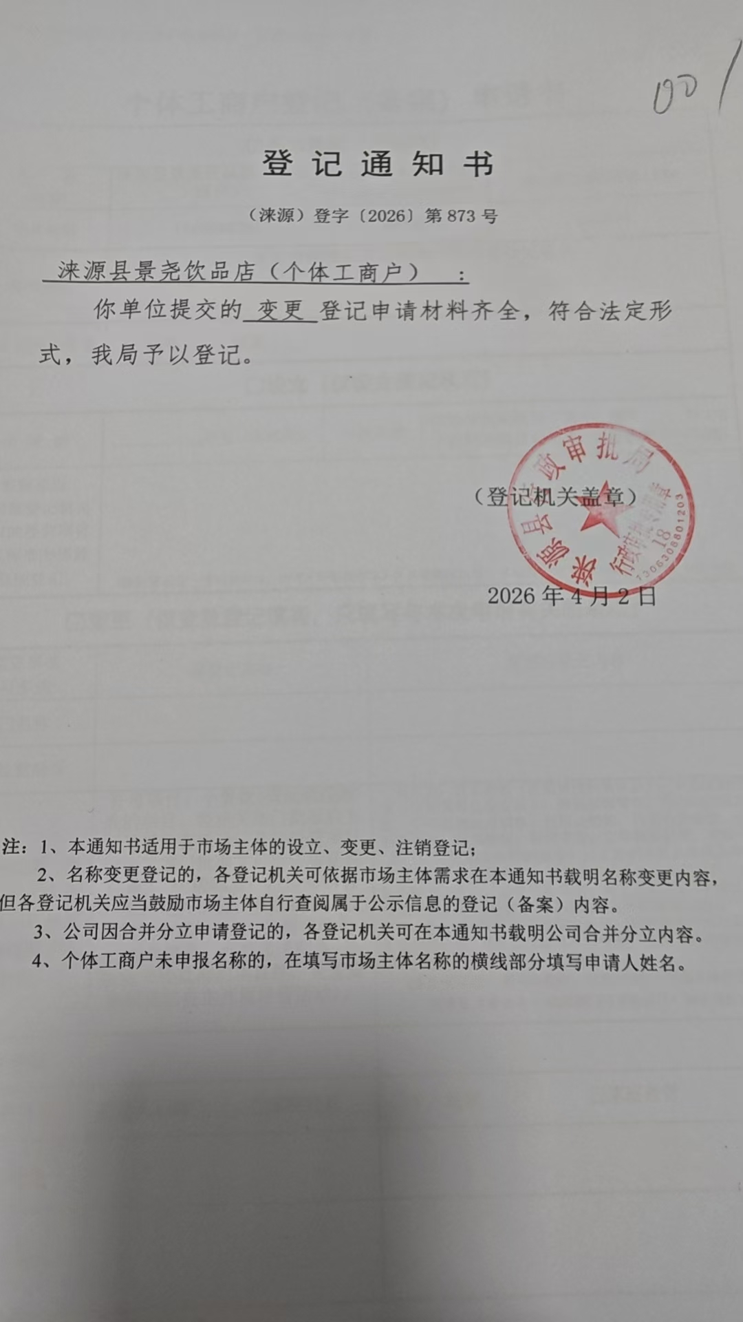 关于涞源县景尧饮品店许可的公开