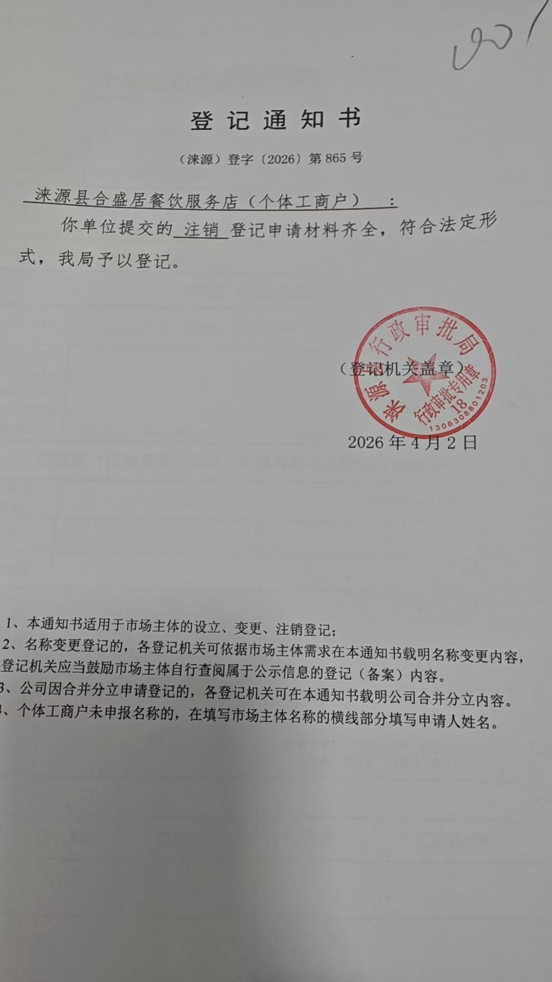 关于涞源县合盛居餐饮服务店许可的公开