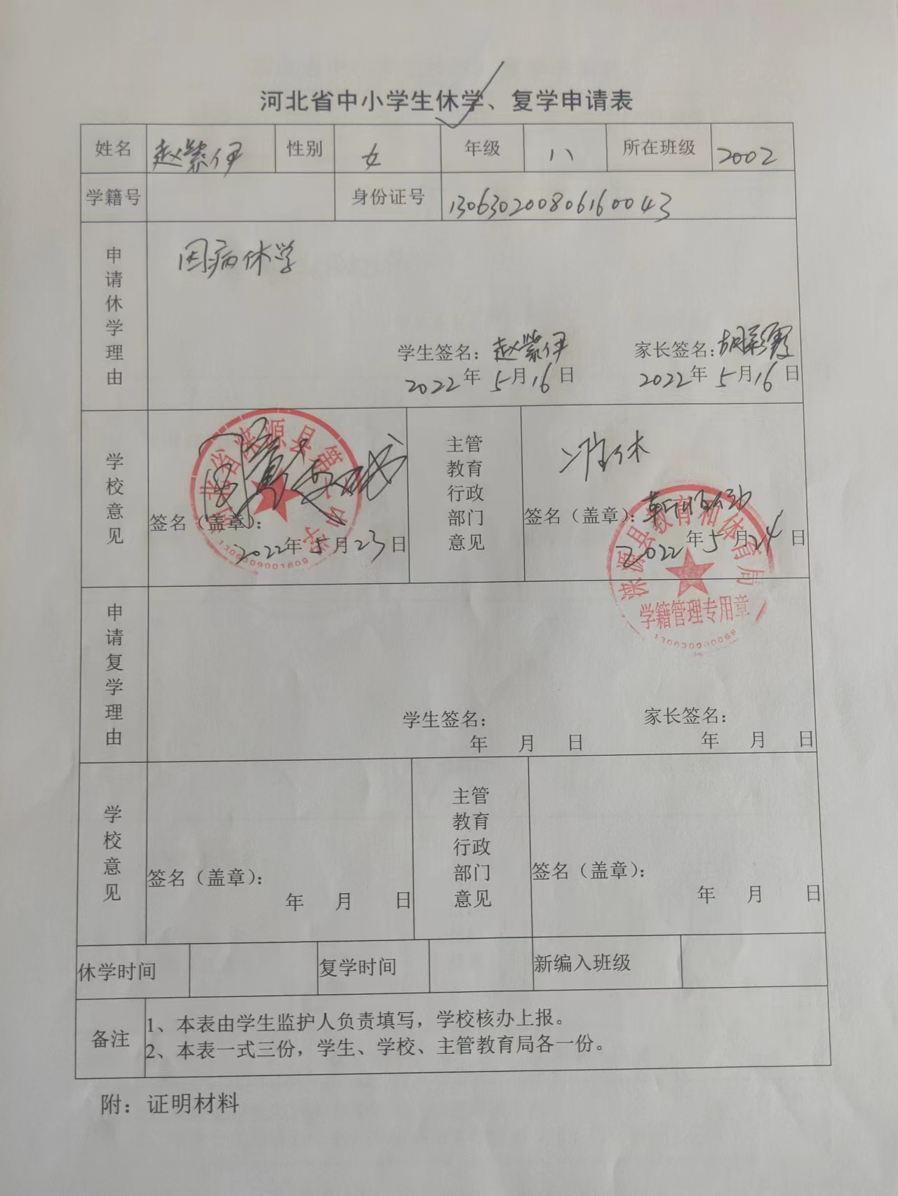 涞源县教育和体育局学生休学结果公示