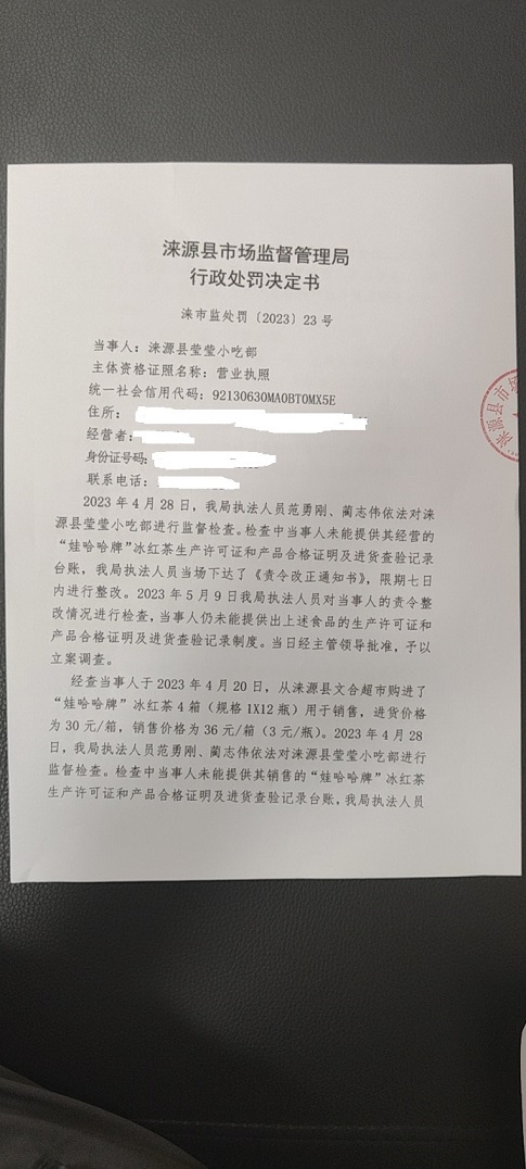涞市监处罚〔2023〕23号涞源县莹莹小吃部购进食品未按规定建立进货查验记录制度案