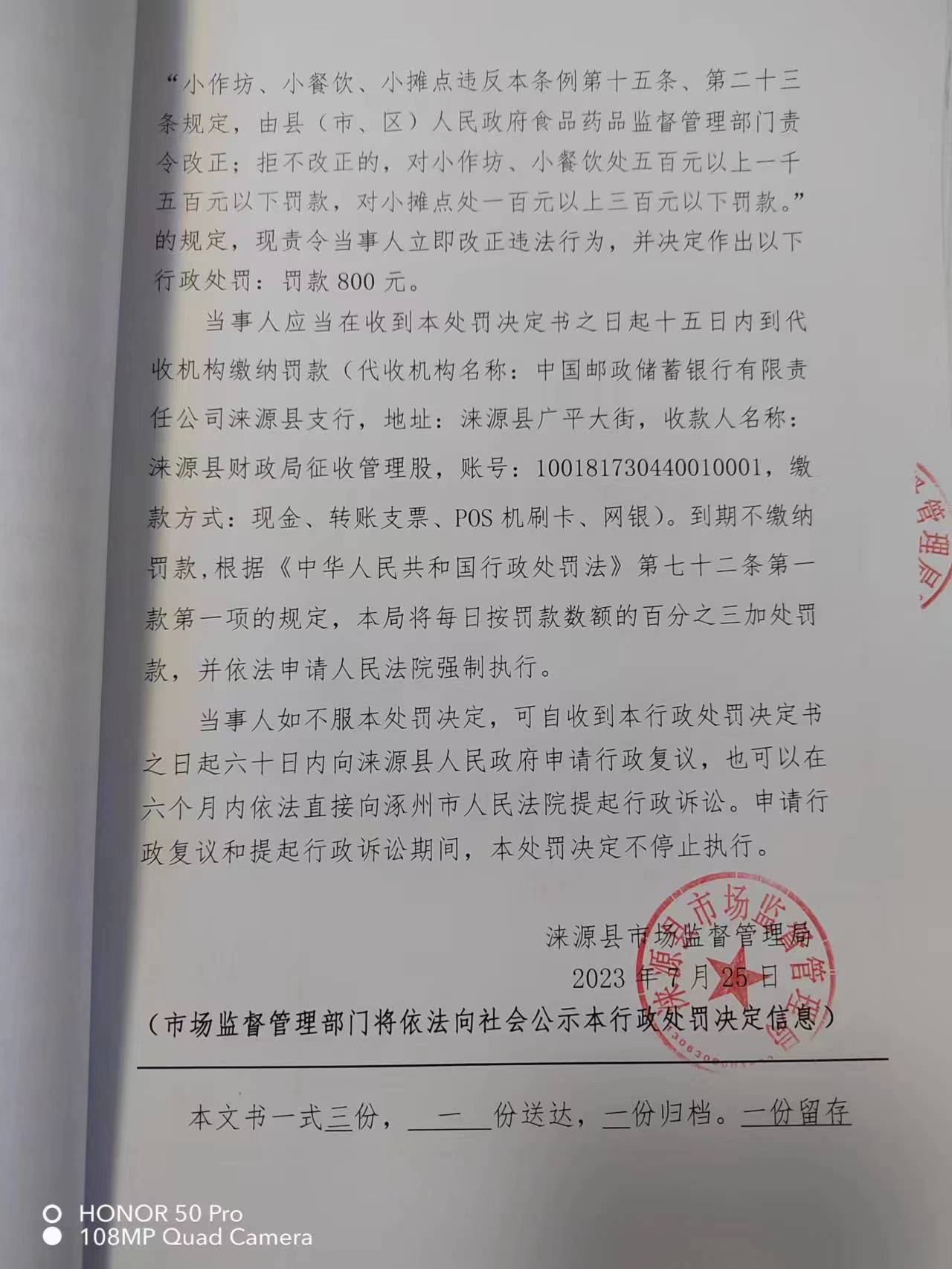 涞市监处罚〔2023〕56号涞源县琦乐小吃部购进食品未按规定建立进货查验记录制度案