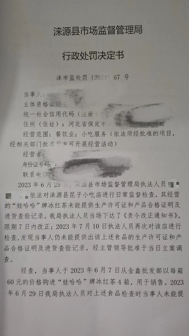 涞源县昆子小吃店涉嫌购进食品未按规定建立进货查验记录制度案