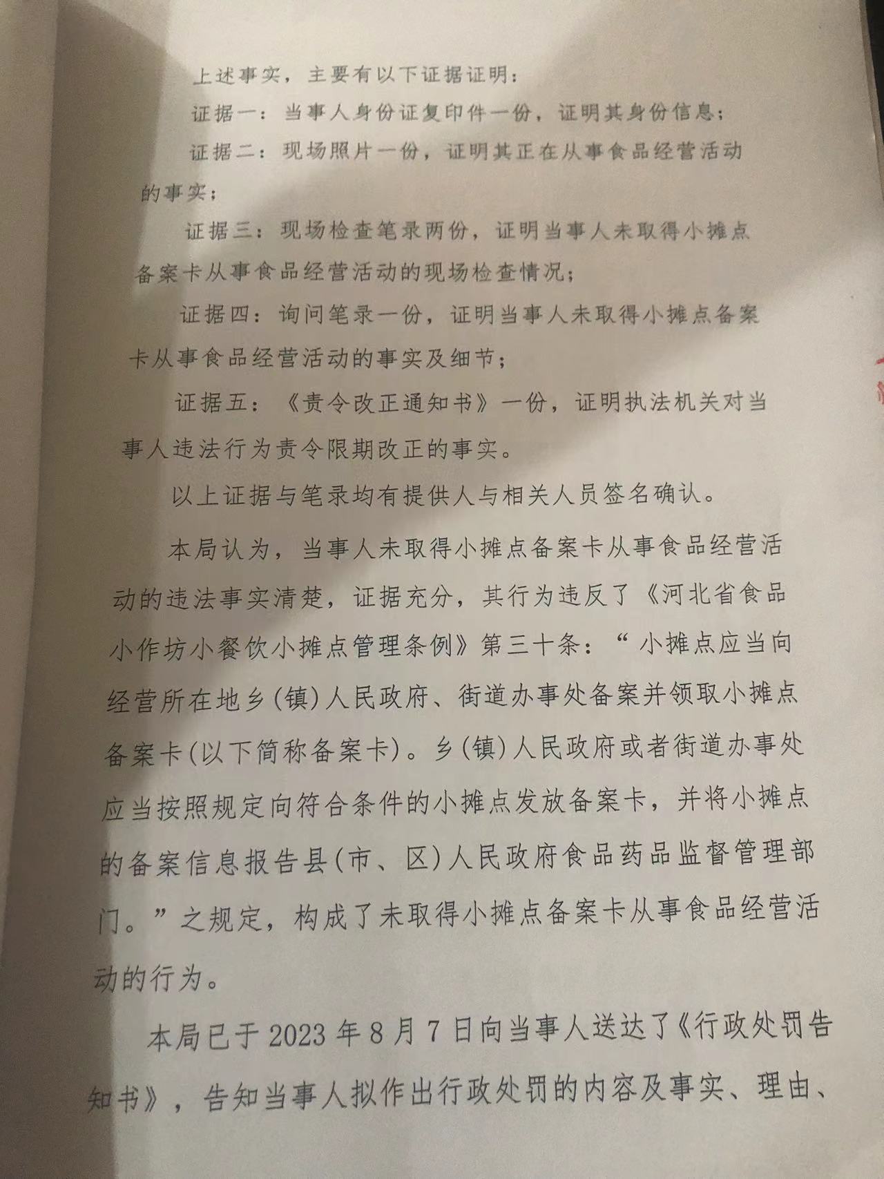 涞市监处罚[ 2023 ] 70号王新国未取得小摊点备案卡从事食品经营案