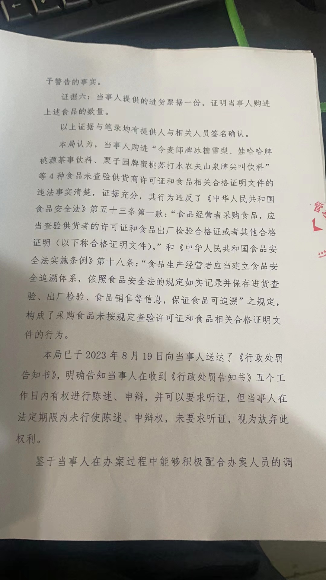 涞市监处罚〔2023〕走马驿3号,涞源县千惠超市进货未按规定查验许可证和相关证明文件案
