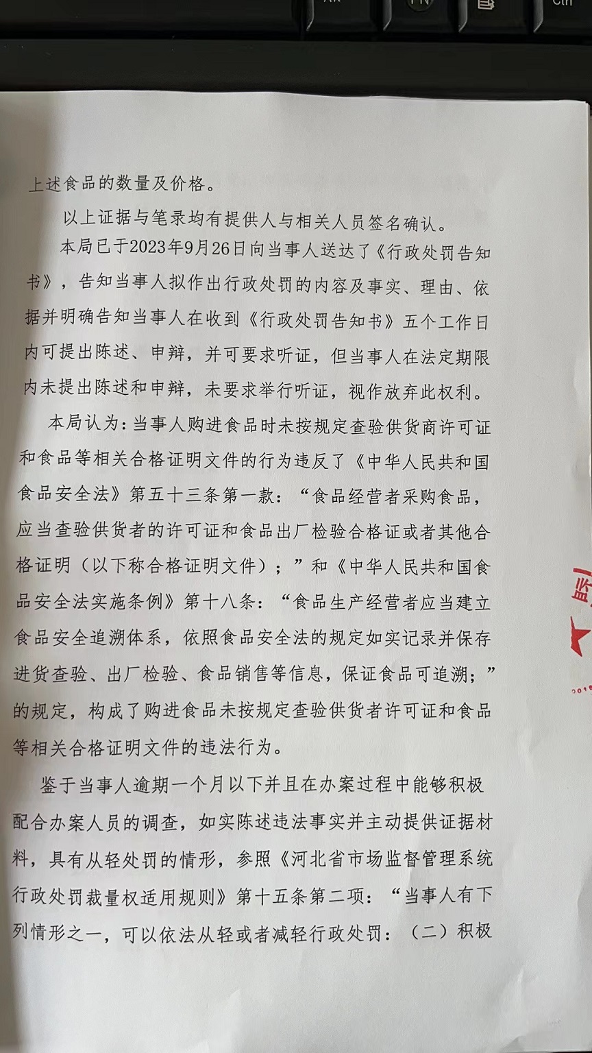 涞市监处罚〔2023〕食9号涞源县秀色肉菜店采购食品未按规定查验供货者许可证和合格证明文件案