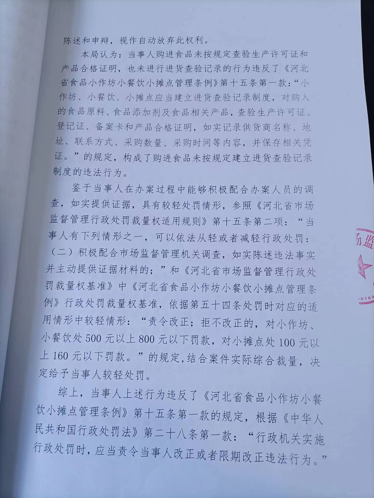 涞市监 〔2023〕泉坊22号涞源县谈小娟小吃店购进食品未按规定建立进货查验记录制度案