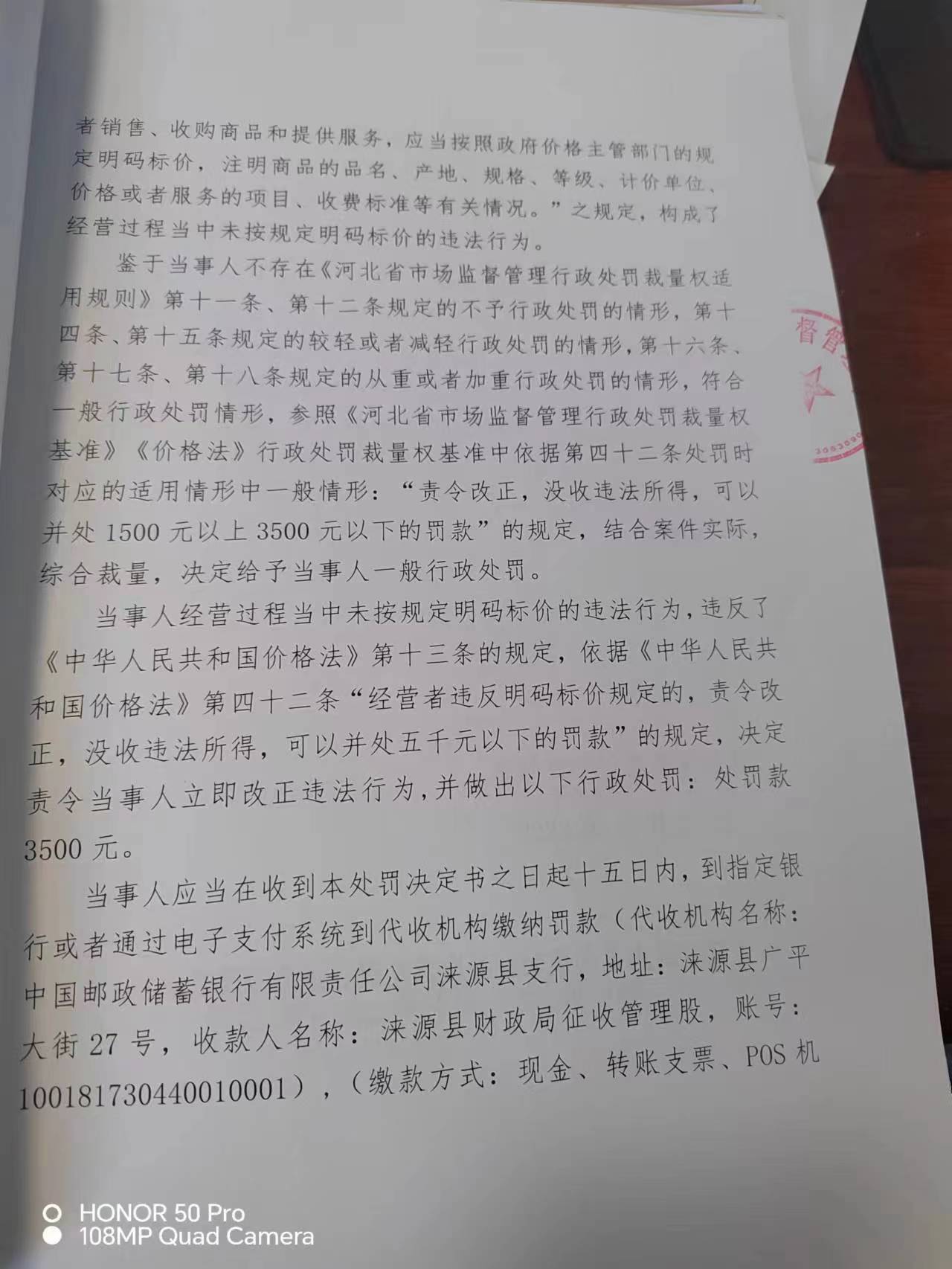 涞市监 〔2023〕泉坊26号涞源县牛氏小料面馆 未按规定明码标价案